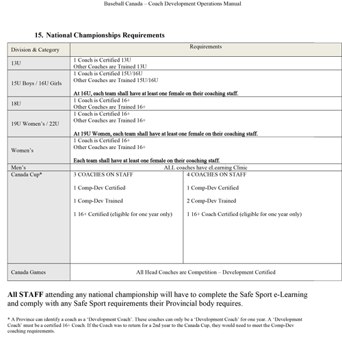 For more information on the requirements needed to coach in your province, please contact your provincial baseball association.